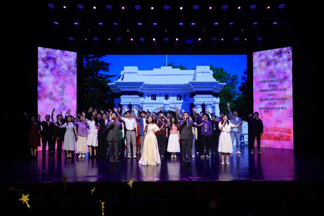 第二篇章“水木情缘”唤起师生校友在清华园里的温暖情谊,校园歌手演唱的《一路花香一路唱》和校友带来的歌曲《少年游》抒发了对于青春岁月的热爱与怀念,咏恒合唱团以一曲《夏天的梦是什么颜色的呢》描绘出夏日的斑斓记忆,而学生艺术团话剧队的《我想在清华做的100件事》则以真挚、活泼的口吻将校园生活中的美好瞬间娓娓道来。