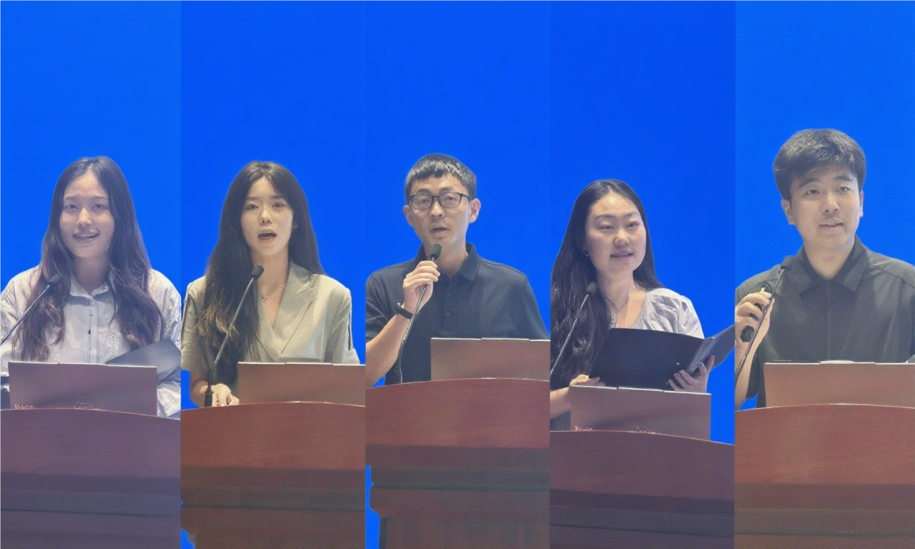 在“立言计划”第八期(春季学期)结业仪式上,清华大学博士生讲师团联盟组负责人、法学院2024级硕士生王捷妤回顾了2024-2025学年度春季学期全国高校青年宣讲联盟的工作成果。清华大学博士生讲师团“立言计划”负责人、卫健学院2024级硕士生郑怡萱汇报了“立言计划”第八期(春季学期)的培养情况。带班讲师代表、能动系2023级硕士生严晓分享了作为带班讲师的经历与感受。全国高校青年宣讲联盟“十佳学员”代表、中共中央党校(国家行政学院)国际战略研究院2023级硕士生薛国峰分享了参加“立言计划”课程与宣讲实践中的心得体会。清华大学博士生讲师团“星级分团”代表、五道口金融学院2023级博士生单晓晗分享了分团立足学科特色、服务青年宣讲的探索经验。