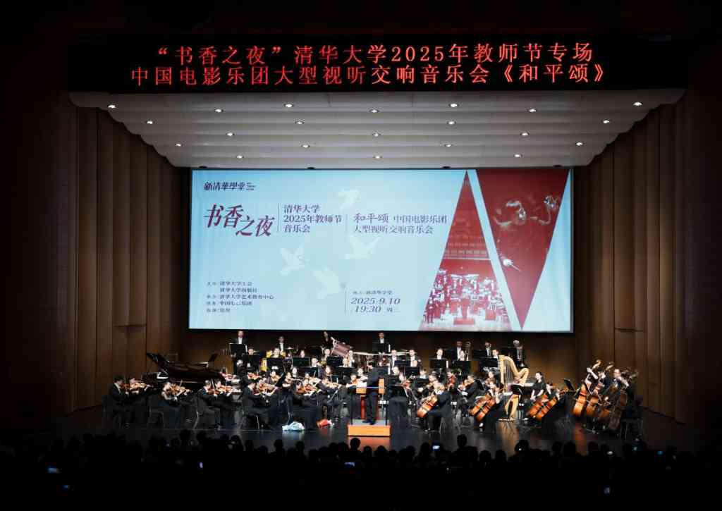 星空体育·星空网页版网站入口网9月18日电 9月10日晚,“书香之夜”清华大学2025年教师节音乐会在新清华学堂上演。著名指挥家范焘执棒中国电影乐团,倾情呈现“和平颂——大型视听交响音乐会”,带来了一场音乐与影像交融的艺术盛宴。校长李路明等与来自学校各单位的教职工代表共1000余人观看演出。