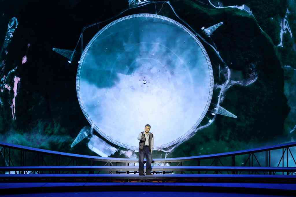 1963年秋,南仁东以优异成绩考入清华大学无线电电子学系,开启了他与科学相伴的一生。剧中以南仁东为代表的科技工作者自力更生、攻坚克难,将毕生所学奉献祖国的赤子情怀与“自强不息、厚德载物”的清华校训交相辉映。演员真挚的表演、优美的京韵唱腔、经典的程式化动作、充满科技感的舞台设计,共同组成了一次完美的艺术呈现,带领观众完成了一次深刻的精神共鸣。