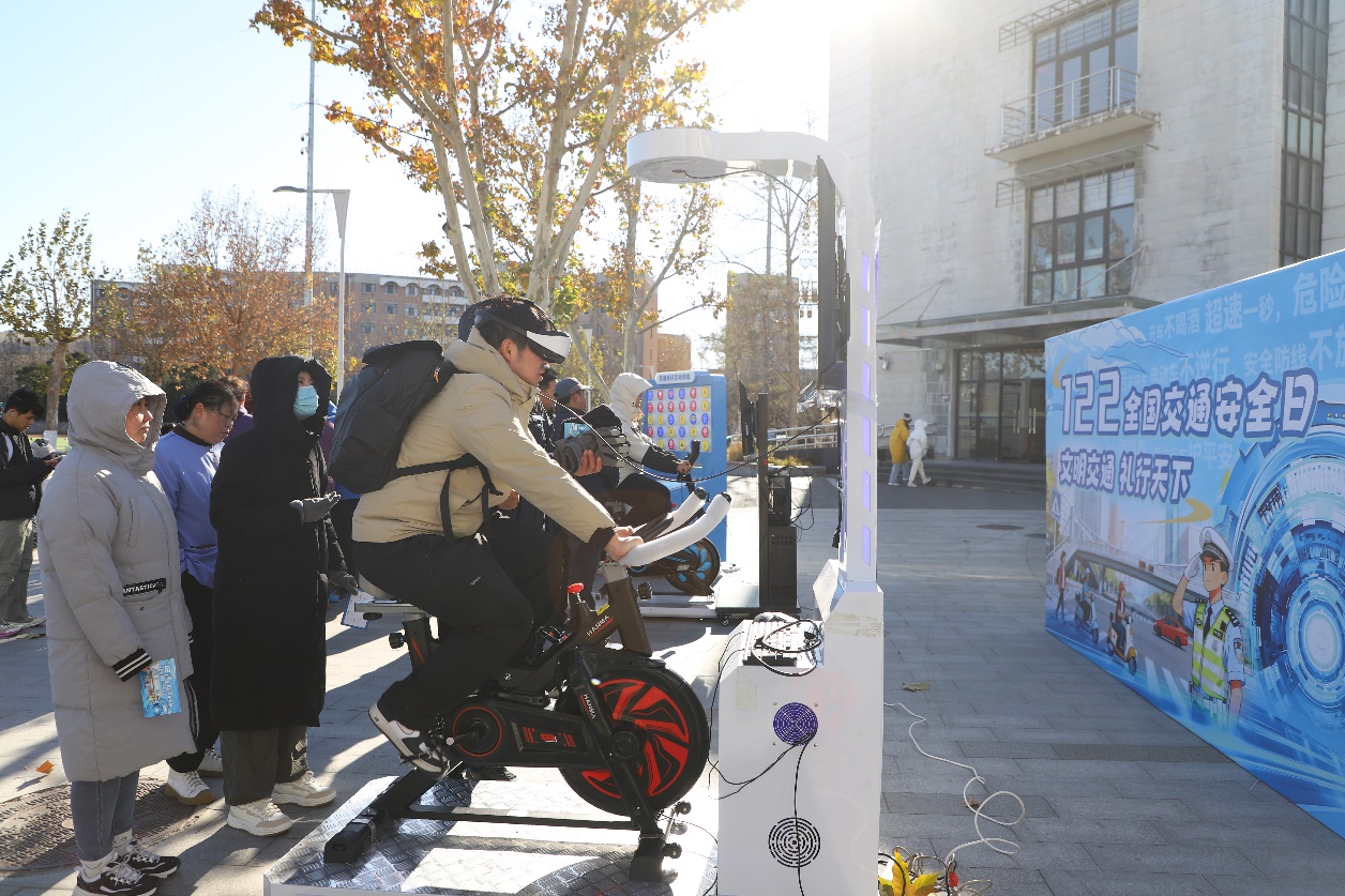 12月2日,保卫处在学生服务中心(C楼)前广场举办“知识闯关、集章打卡”线下活动,吸引了500余名师生参与。活动设置了道路模拟骑行、VR虚拟实景体验、交通知识有奖答题、安全标识你划我猜等多个趣味互动环节,师生在轻松愉悦的氛围中体会安全驾驶与规范骑行的重要性,切实将文明出行理念转化为自觉行动。