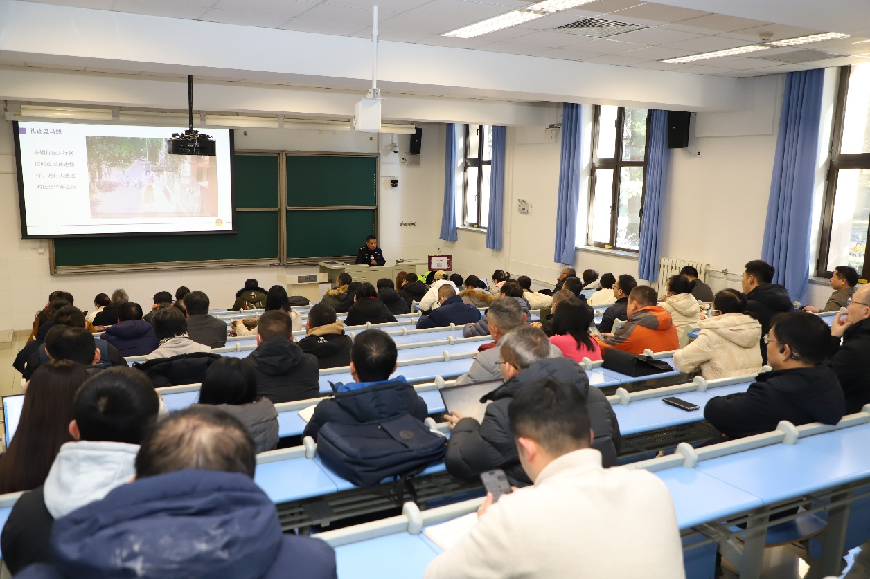 12月3日,保卫处在一教组织开展交通安全专题培训会,全校各二级单位110余名交通安全干部参会。海淀交通支队清河大队警长朱东岳从单位责任落实、个人意识强化两个维度讲解安全防范要点。保卫处副处长刘晓雪传达了近期学校交通安全管理工作要求。