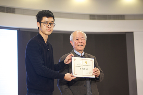 清华大学学生美术社社长、美术学院2012级本科生邹坤达代表美术社向著名书法家、清华大学书法协会会长金德年先生颁发了特约聘书,诚邀他为学生艺术团美术社艺术顾问。
