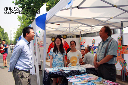 民间大师展示区邀请到传统染织艺人黄荣华和风筝制作艺人缪伯刚为大家现场展示手工艺。义卖区将美院同学一些作品征集并义卖,收益一部分通过清华大学小动物保护协会捐献给清华园中的小动物。
