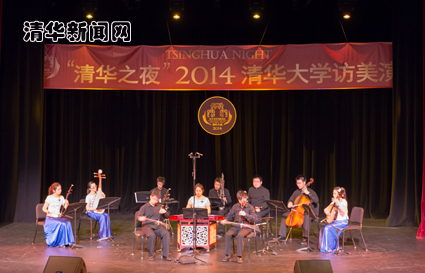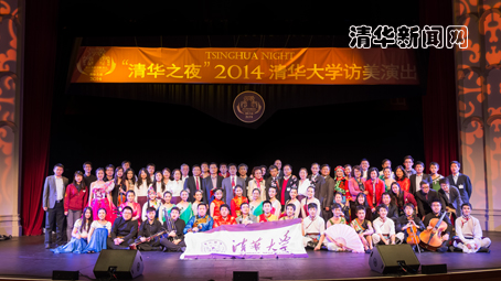 独具民族特色的民乐合奏《赛马》、中阮独奏《云南回忆第三乐章》和弦乐四重奏《梁祝》赢得了满堂喝彩;独唱曲目《春天的芭蕾》《没离开过》,以及女声二重唱《为祖国干杯》,分别以细腻优雅、率性洒脱、大气自然的表演,将音乐之美注入了听众的心灵深处;女子群舞《桃夭》和男子群舞《库马拉随想》分别展示了中国女子的温婉和男子的豪迈,令观众大饱眼福、啧啧赞叹。除了学生艺术团的节目外,洛杉矶当地的清华校友也在百忙中准备了精彩的节目,合唱《茉莉花》《同一首歌》和群舞《欢乐的火把节》反响热烈。最终,在一首热烈欢快的《相亲相爱》中,演员们进行了精彩的谢幕。