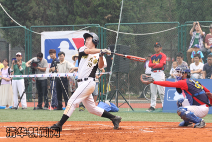 绿荫场、红泥土,此刻白色队服帅气的身影组成了北操场最亮丽的风景线。在千余名来自北京各高校的棒垒球队员和广大棒垒球爱好者的加油助威中,清华队一鼓作气、连连打出安打,并击出满贯炮,在比赛中以稳健的发挥以20:4的比分成功登顶,成为首都高校棒球决赛冠军。