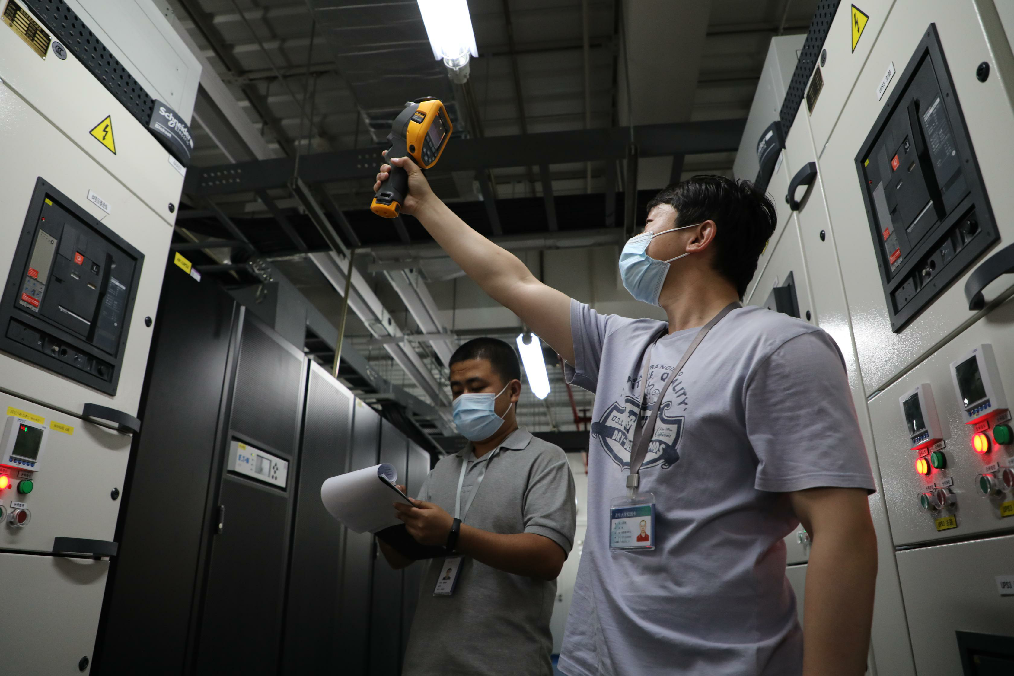 运维人员正在测量关键设备运行温度