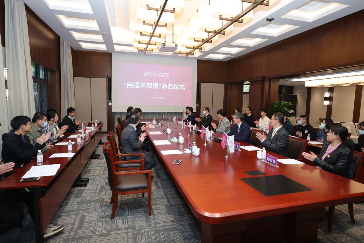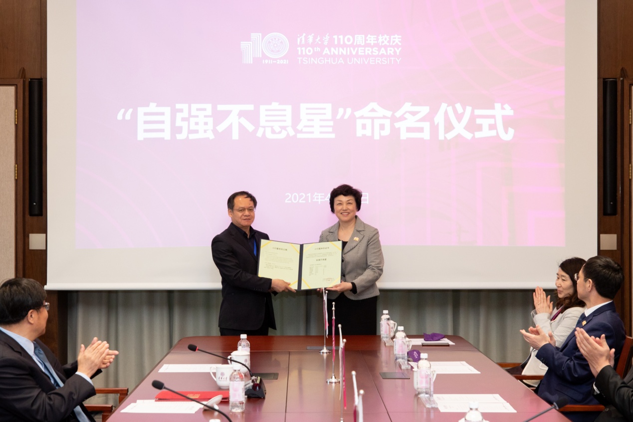 仪式上,薛随建宣读了“自强不息星”命名公报和命名证书。汪洪岩向清华大学颁授了命名公报、命名证书和运行轨道图。经国际天文学联合会小天体命名委员会批准,将中国科学院国家天文台施密特CCD小行星项目组于1997年12月19日发现的小行星1997YC1(国际永久编号第10911号)正式命名为“自强不息星”。从此,浩瀚的星空中又多了一颗与清华大学相关的小行星——“自强不息星”。