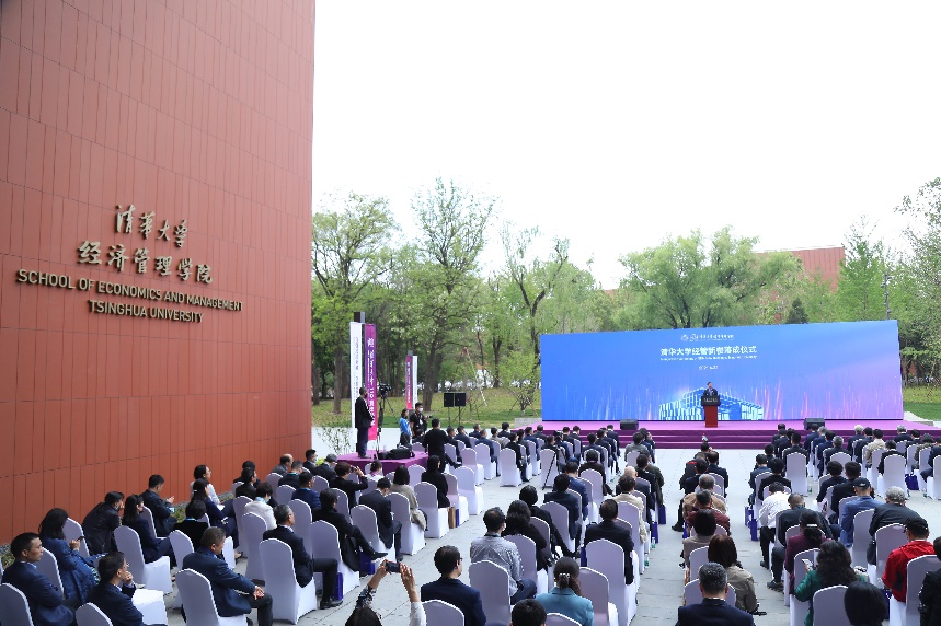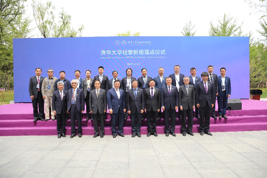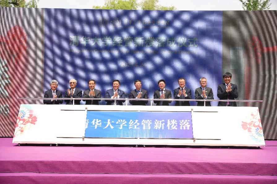 清华大学校长邱勇,副校长吉俊民、杨斌,经济管理学院第二任院长(2001-2005)赵纯均,文科资深教授、经管学院经济系教授、第四任院长(2006-2018)钱颖一,经管学院院长白重恩,经管学院党委书记兼副院长陈煜波,恒力集团有限公司董事长、总裁陈建华,卓越集团董事局主席李华共同为经管新楼揭幕。