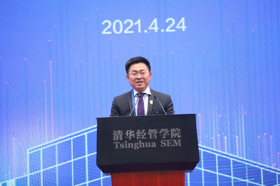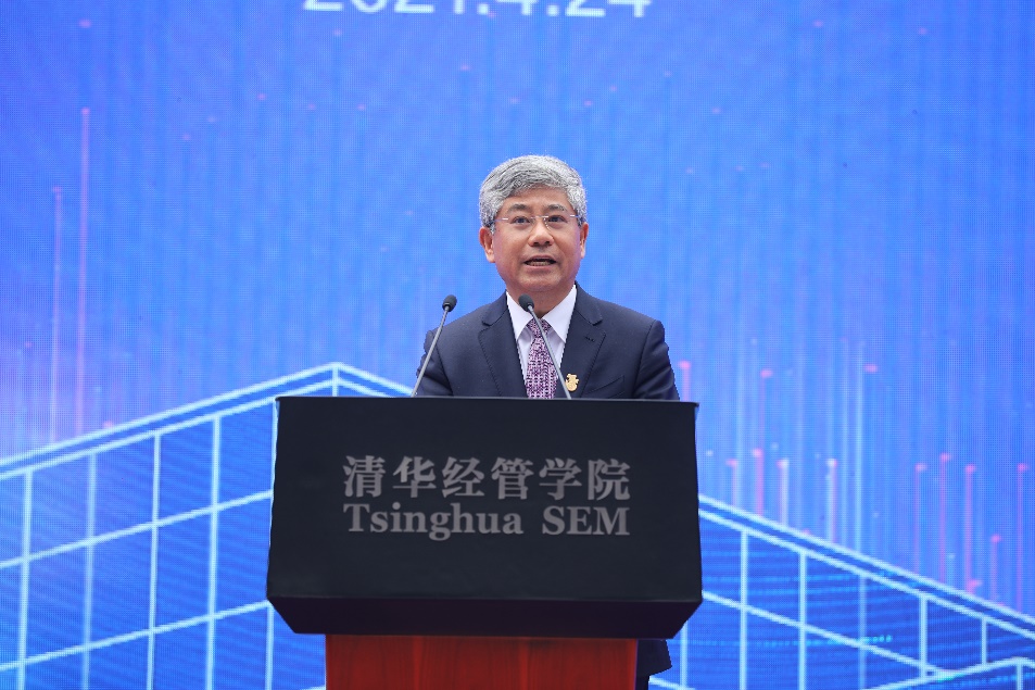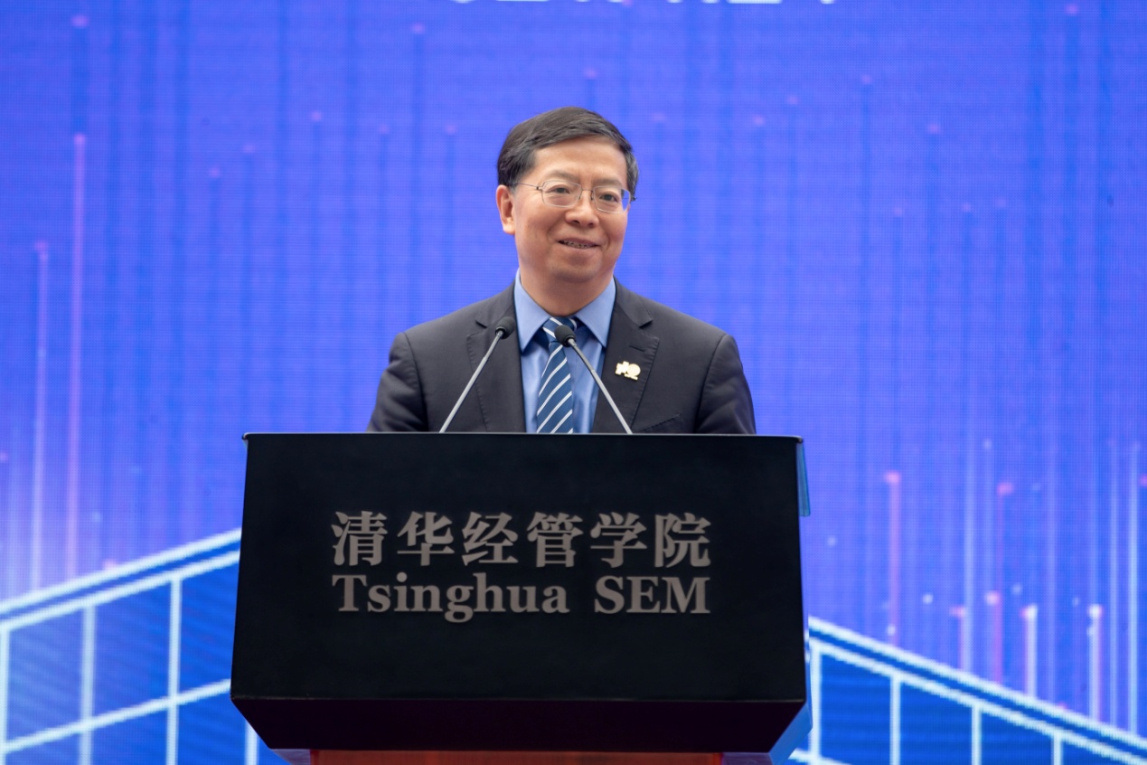 白重恩在致辞中代表经管学院向参加仪式的各位嘉宾表示热烈欢迎,向捐赠方恒力集团和卓越集团、施工单位、项目监理单位、施工人员以及所有关心支持新楼建设的师生校友表示衷心感谢。白重恩介绍,新楼设计理念为“知识之桥”,体现连通性、特征性、整体性三大主题,新楼的落成是学院发展的一个重要里程碑。白重恩表示,经管学院建院37年来,始终与时代的发展、清华大学的建设同向同行,为中国的发展和人类的进步创造思想、贡献智慧、培育人才。站在新起点,学院将牢记初心使命,坚持立德树人根本任务,把服务国家作为最高要求,把贡献人类文明作为重要目标,不断加强学科建设,深化改革,锐意创新,努力建成世界一流的经济管理学院,以优异的成绩回报各级领导、广大校友及社会各界的关心。