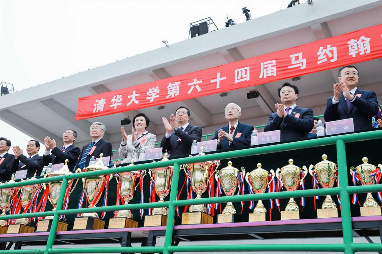 自2015年起,校友方阵已逐渐成为马杯入场式的“传统项目”。毕业10周年、20周年、30周年、40周年、50周年的校友方阵入场赢得了全场最热烈的掌声。他们与清华同呼吸,与祖国共命运,在各自岗位上不懈的奋斗,作出了应有的贡献,还有不少校友带着可爱的“小清华”们回到母校。毕业五十年来,1965级、1970届“零零字班”的老校友们,以及1964级、1970届“零字班”的老校友们,始终拼搏在五湖四海,为祖国的发展奉献了青春,已经坚持为祖国健康工作50年。当他们高喊“清华育我,我爱清华”的口号,器宇轩昂、精神矍铄地走过主席台时,全场观众用经久不息的掌声向他们致敬。