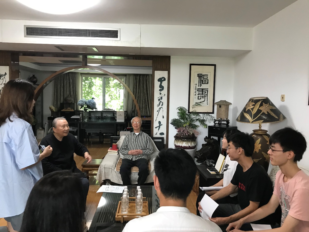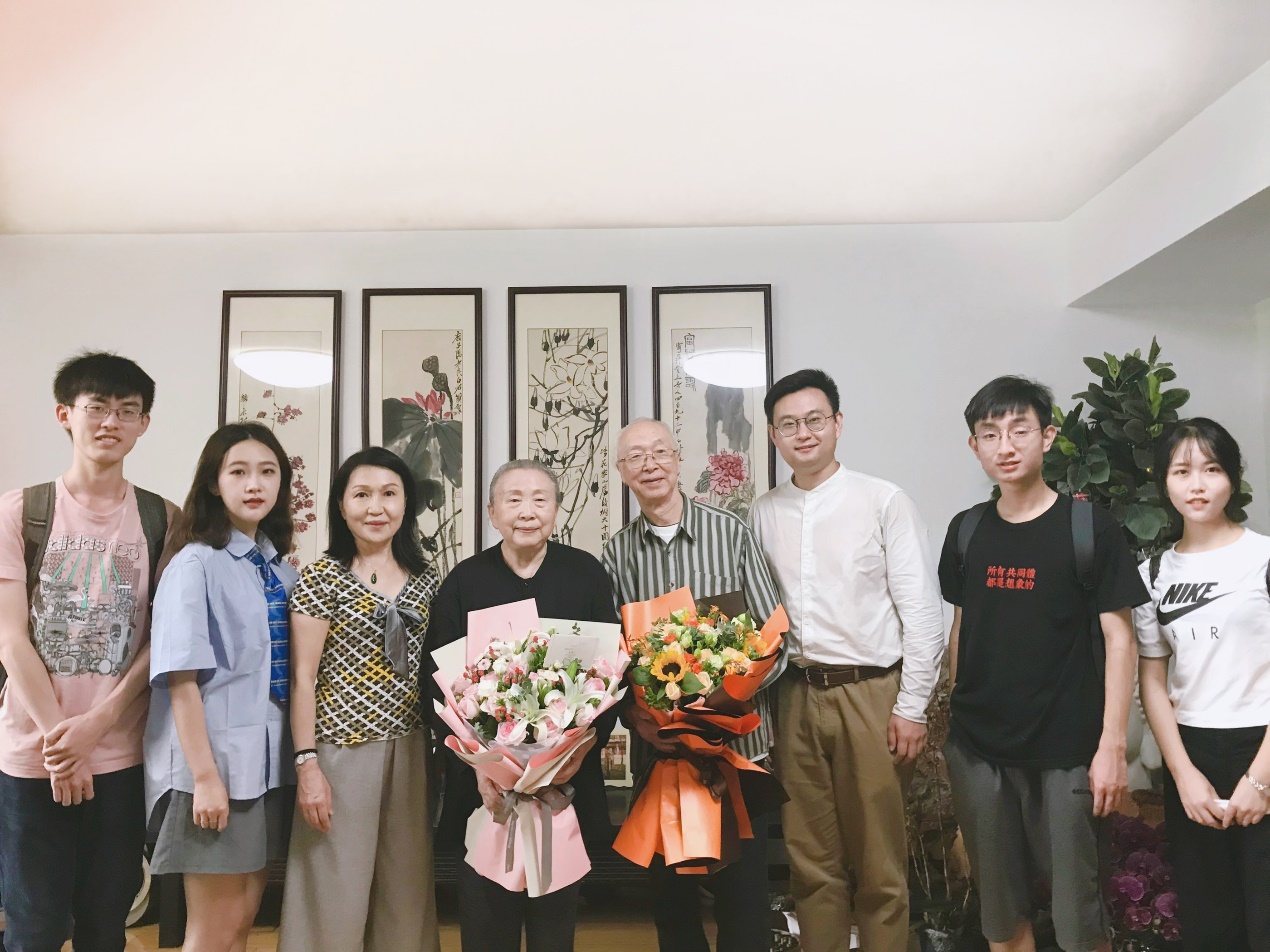 张锦秋(左四)韩骥(左五)与采访同学合影留念