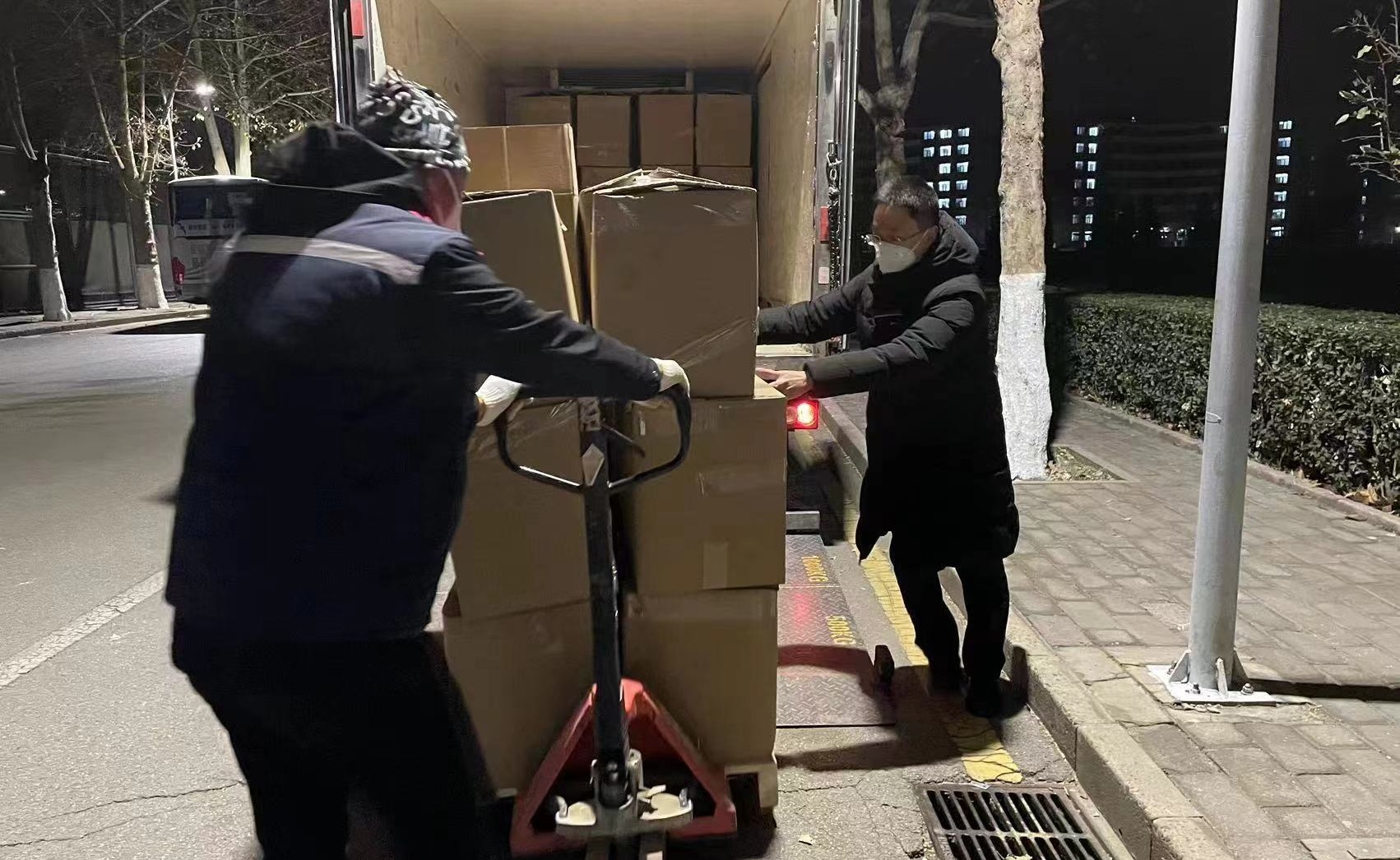 凌晨2点,应急物资配送工作协调群响起了提示音,清华大学商贸中心业务办公室主任刘振捷接到通知后,开始了新一天应急物资配送的准备。集结起应急保障人员,一宿的装袋打包。清晨7点,食品“爱心大礼包”清点并装车完毕,在第一节早课铃声响起之前,抵达宿舍楼下。