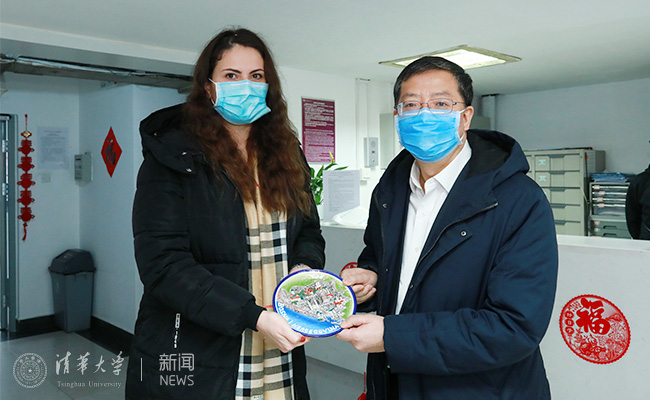 中国学生李蓓茜将自己亲手制作的中药香包赠予了陈旭等几位老师,意喻幸福安康。陈旭笑着捧着香包表示,今天是正月十五元宵节,按照中国的传统,恭祝大家新年快乐,同时也祝愿大家身体健康,祝愿全国人民早日战胜疫情,清华早日恢复正常的教学秩序。