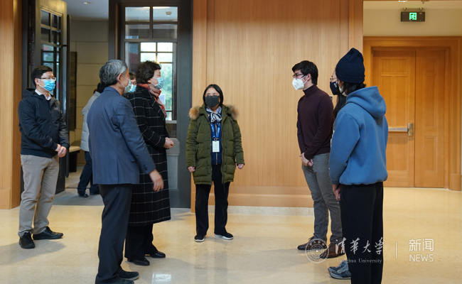 陈旭一行来到苏世民书院,亲切询问了留校的三位学生的学习、生活情况,并叮嘱大家,在疫情期间,除了安排好个人的生活与学习节奏外,还是要注意做好防护措施。同学们回答,在书院生活不仅方便还安全,大家都很少出门,正好有大把的时间可以用来学习和写论文,书院老师细心关照大家的生活,非常令人感动。