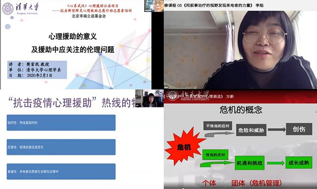 清华大学社科学院心理系的公益项目很快得到了国内众多心理学专家的响应和全力支持;但是,受此次新冠病毒的高传染性特点的影响,以及系里师生人员不多的客观条件制约,老师们无法亲赴一线开展面对面的心理服务。于是,决定动员和组织经验丰富的心理学专家团队,来面向广大的心理志愿工作者提供专业、全面、系统的心理危机干预相关课程的培训和督导,从而调动起更多的心理学工作者和爱好者来开展线上疫情心理科普和心理辅导。
