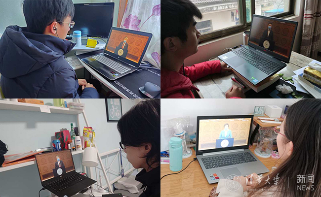 武汉大学的同学们在家观看直播