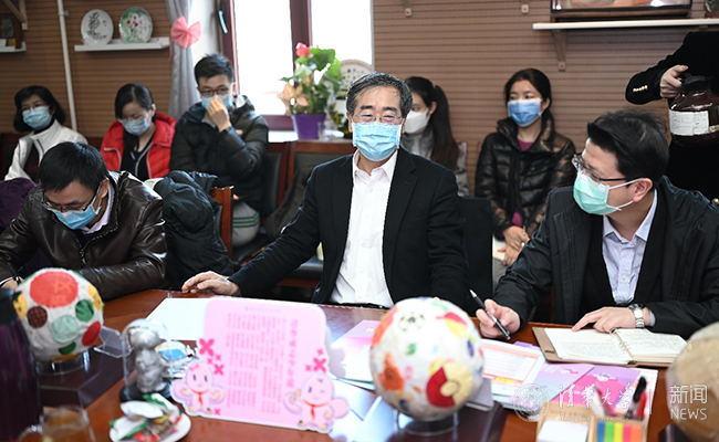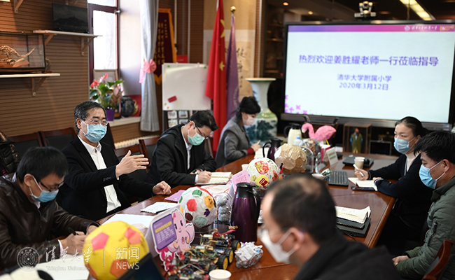 姜胜耀一行随后来到清华附小,附小校长窦桂梅、副校长胡兰详细汇报了附小疫情防控工作的具体做法和“停课不停学”有关安排。附小整合北京市、海淀区及清华附小特色教育教学成果,形成一站式教育服务平台,指导学生形成私人定制化的“1+X”自主学习菜单,并且积极发挥公益精神,在中国教育电视台面向全国直播课程,赢得全国各地师生家长欢迎。