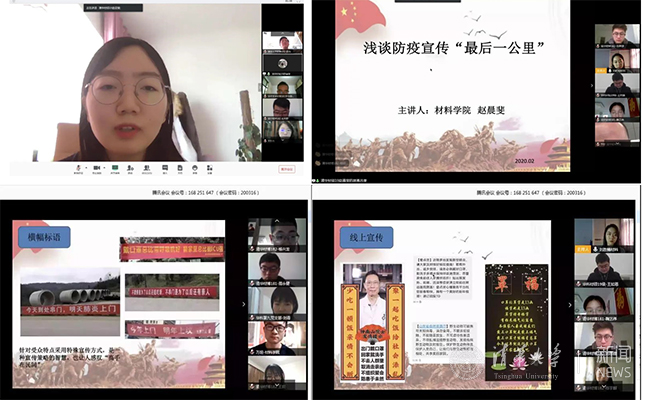 为进一步贯彻习近平总书记关于疫情防控工作重要讲话精神和学校党委《关于充分发挥党组织战斗堡垒作用和党员先锋模范作用 全力做好新型冠状病毒感染肺炎疫情防控工作的通知》精神,扎实做好延期开学期间的学生思想政治教育和党员教育及发展工作,清华大学材料学院研团总支主办了此次云上联合主题教育活动成功开展,通过联合组织生活、讲师团讲师宣讲以及师生交流讨论等形式,旨在鼓励研究生以集体为单位,加强思想教育,保持应有的精神面貌,以强烈的责任意识和担当精神,为战胜疫情作出自己应有的贡献。