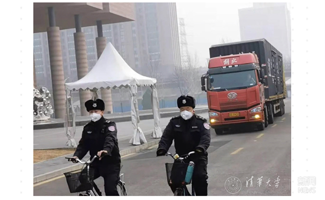2月12日凌晨1:58,INDITEX物资抵达清华园。一大早,位于校内的物资分拣接力赛便紧锣密鼓地展开:两位来自保卫处交通科的工作人员骑着自行车,一路清障全程护航,为这辆17.5米长的厢式货车开道;校工会教师活动中心作为医疗物资分拣的临时仓库,早已安排好 "重兵把守”,等待物资到来;货车仓门一打开,饮食中心的师傅们也帮忙搬运物资;重型叉车、电动三轮车、人工接力,从卸货到清点,从分拣到再次装车,大家相互配合,与时间赛跑,建起了一条抢救生命的运输线。