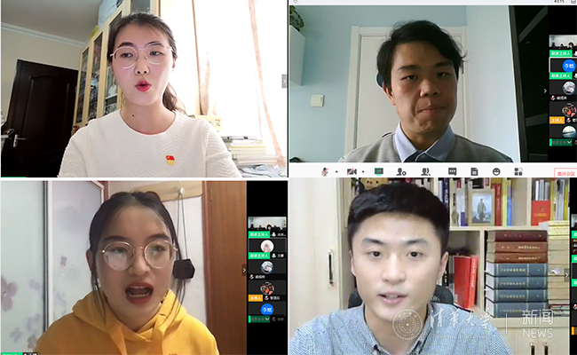 北京景山学校青年党员盛晴、李燃和清华大学马克思主义学院研究生党员王娜、车宗凯先后发言。