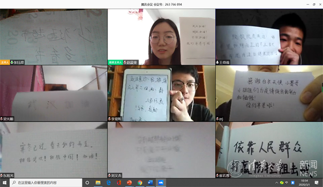 同学们通过排列会议头像表达对抗疫必胜的决心