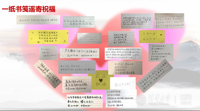 同学们手写祝福语,表达团结一致抗击疫情的决心