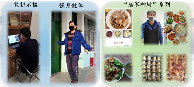 同学们在家中开展学习科研活动,积极锻炼,施展厨艺