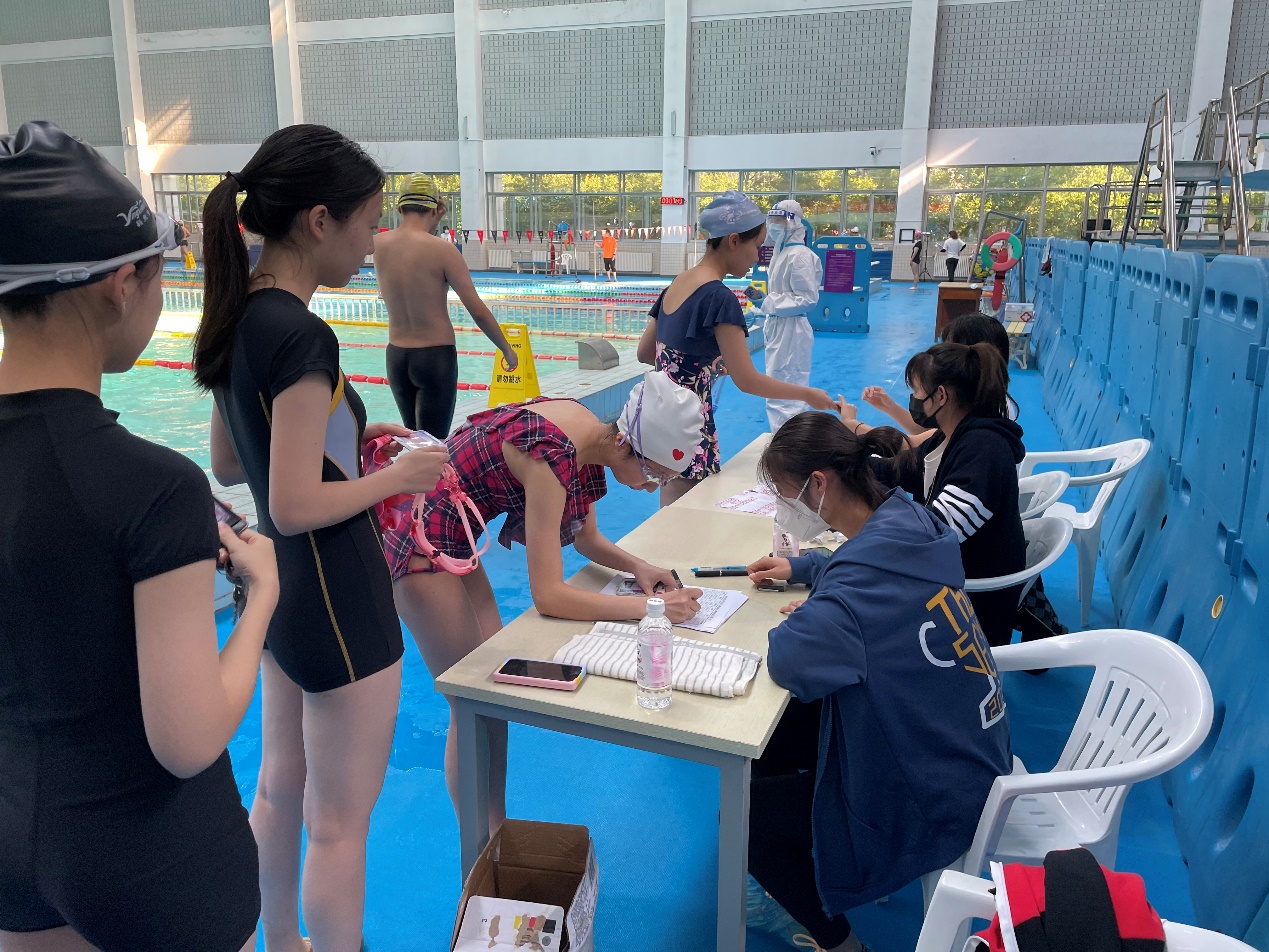 “这次测试与以往任何一次都不一样,当我看到所有的老师都穿上大白的时候,真的还是非常惊讶和震撼的!”她回忆说,整个测试环节非常有序流畅,从入场隔位就坐、浅水区热身到测试全部结束,每一个环节都有老师或学生志愿者反复叮嘱、悉心安排。