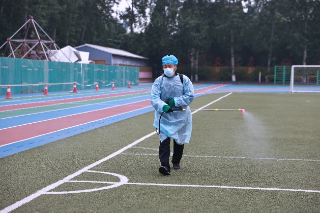 操场使用前和使用后,进行一次集中消杀,确保校园环境安全