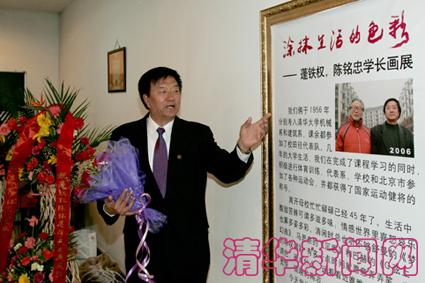 蓬铁权、陈铭忠在校时是品学兼优的学生,又是清华大学最早一批获得国家运动健将和打破全国纪录的优秀运动员,毕业后在近五十年的社会主义建设事业中,他们勤恳、踏实、忠诚、敬业地献出了自己的青春年华,基本实现了“争取至少为祖国健康地工作五十年”的目标,他们现已迈入古稀之年,仍孜孜不倦地为社会作些有益的事情,这次推出的画作,展现了他们积极乐观、豁达、开朗的内心世界和深厚的艺术功底,体现了活到老学到老,老有所为,老有所乐的人生追求,既陶冶了情操又启迪了同学们的思路,令人振奋。(编辑 襄桦)