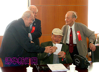 【新闻中心讯 记者 魏磊】4月24日上午,我校1938级校友在甲所多功能厅聚会,十多位耄耋之年的老校友们欢聚一堂,共同庆祝母校94华诞。 1938级校友是我校1934年招收的第十届本科生,也称“十级”。今天参加聚会的老人有的是特地从美国、台湾回到母校。还有两位11级和12级的校友也从台湾赶来参加了聚会。十级校友联络人陈宝仁向大家通报了同学们的情况。故友们重逢在清华园,有说不完的话,叙不完的情。 常务副校长何建坤代表学校看望了老学长们。