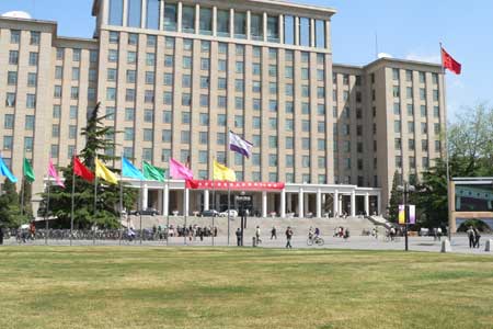 校庆日清华主楼前各系旗帜飘扬
