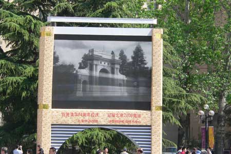 主楼前的电子大屏幕欢迎校友返校