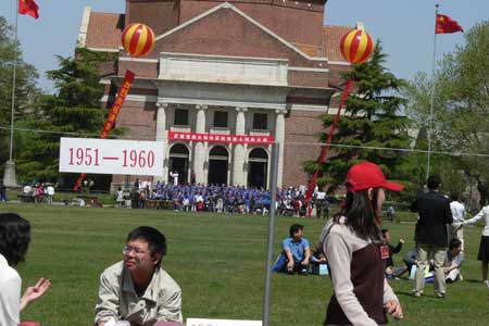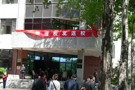 各系都挂着横幅欢迎校友