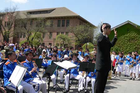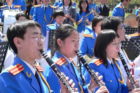 学生军乐队在大礼堂前演奏