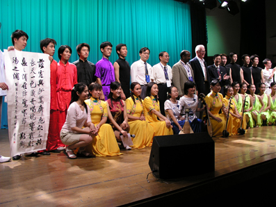在一个半小时的演出中,清华大学学生艺术团为观众奉上了民族歌舞、武术、书法、中国古典乐器演奏、钢琴演奏、拉丁舞等形式多样、内容精彩的节目。中外代表们对我校学生艺术团精湛的表现报以阵阵热烈的掌声。
