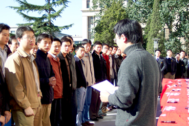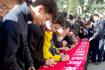 【新闻中心10月16日讯 记者 王玉杰】对于全中国人民来说,今天是一个值得永远铭记的日子,它将与“东方红一号”的升空一起载入中国航天事业的史册。我国首次载人飞船“神舟”五号于昨天顺利发射并于今晨成功登陆回归。将于明天参加首届全国博士生论坛的全国35个研究生院的328名博士生今早在清华大学主楼前举行了签名仪式,庆祝我国自行研制的“神舟”五号飞船飞行成功和安全着陆。
