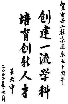 清华大学校长王大中为系庆题词