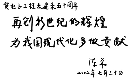 中共中央政治局委员、国务院副总理、电子工程系系友吴邦国贺词