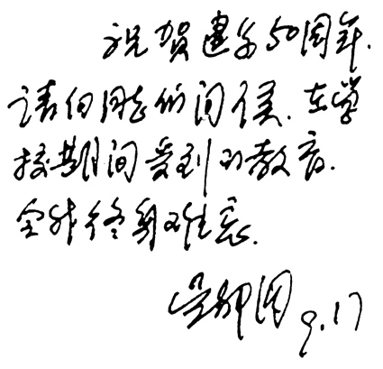 清华大学原党委书记、 第二任系主任李传信为系庆题词