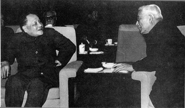 1980年3月在中国科协第二次全国代表大会上与邓小平同志亲切交谈。