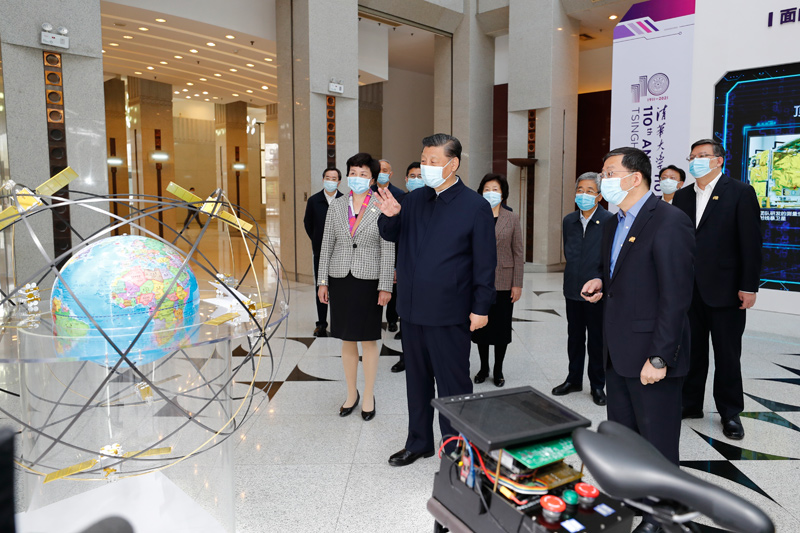 在清华大学主楼二层展厅,习近平听取了校长邱勇关于增强自主创新能力、助力世界主要科学中心和创新高地建设、提高人文社会学科教育研究水平等情况介绍,对清华大学取得的成绩给予充分肯定。