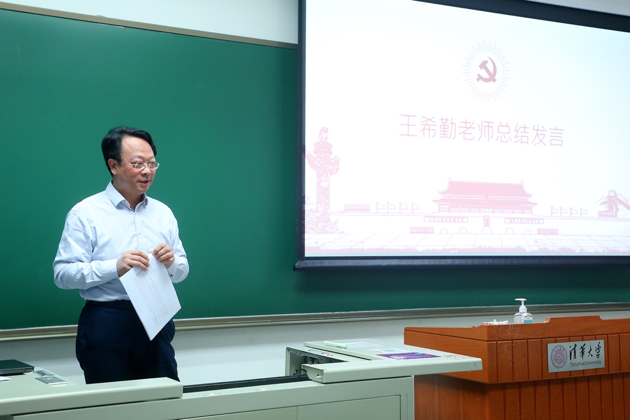 王希勤在总结讲话中对同学们认真学习党史、主动关注时事、努力筹备党团日的态度给予了肯定。他从学科分化与问题综合、个人声誉与组织声誉、自然科学与人文科学等角度,分析了现代大学的特点以及发展走向;回顾了清华学科设置和调整的历史,以及书院制在清华的落地和发展历程。王希勤结合习近平总书记在清华大学考察时的讲话精神指出,当前世界处于百年未有之大变局,清华作为中国高等教育的一面旗帜,有责任去探索中国式的现代化大学道路。同学们作为第一批接受强基计划培养的学生,应当牢记习近平总书记的讲话精神,积极承担起当代青年的责任与使命,主动参与到教育过程中,处理好理论学习和创新实践之间的关系,在探索道路上贡献自己的力量。
