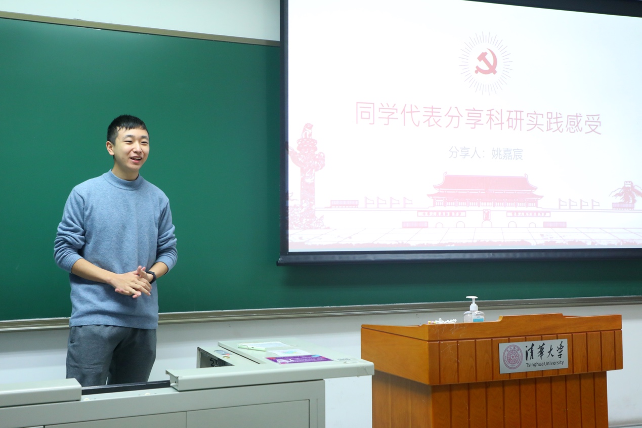 活动首先回顾了习近平总书记在庆祝中国共产党成立100周年大会上的讲话,并结合前期共读的《中国巨变》一书对我国改革开放以来的科技发展路径、金融业和生命科学领域的前沿创新等问题进行了解读。在此基础上,姚嘉宸作为班级同学代表,结合自己入学一年多来的学习、科研和实践等经历分享了心得体会,表达了未来希望继续从事科研的决心。