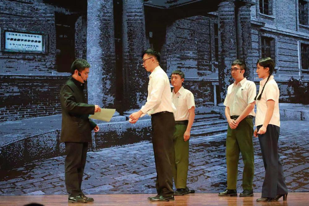 2018年在清华大学教职工文艺汇演上,《我们从五道口走来》首场演出,此后这部短剧成为学院“保留节目”,图为演出剧照