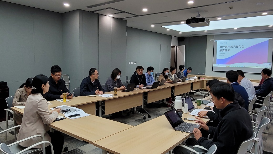 在交流讨论环节,政研室副主任解峰补充介绍了在参阅大量历史文献基础上,大会报告构架和核心理念的形成过程,并对“高质量”等重点名词进行了解读。科研院科研项目部主任朱付元和先进技术院副院长高云峰作重点发言,分别从一流大学创新体系建设、《清华大学2030创新行动计划》推进等方面分享心得体会。