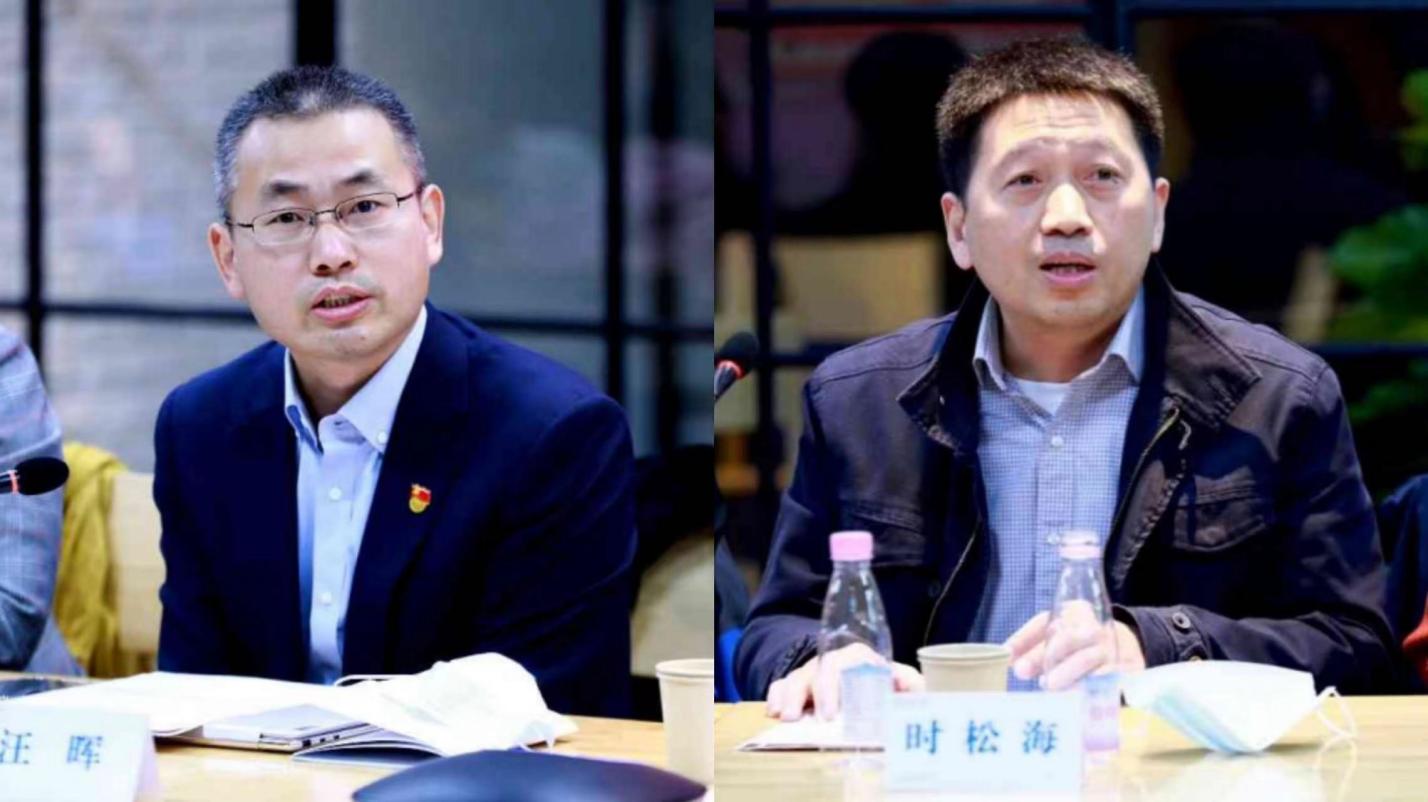 时松海(右)、汪晖发言