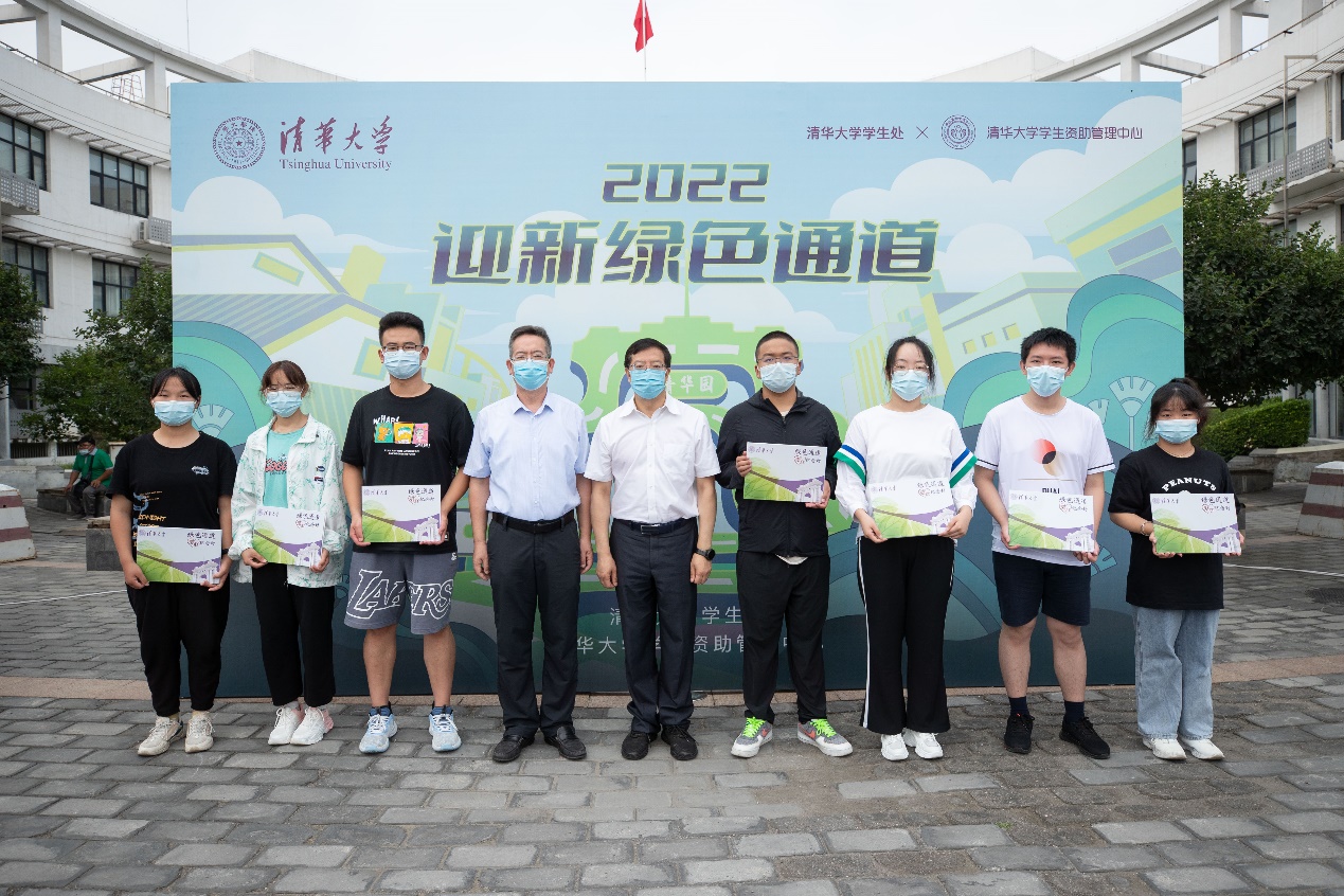 上午9时左右,清华大学党委书记邱勇、全国学生资助管理中心主任陈希原前来看望学生报到情况,并向同学们送上《绿色通道爱心纪念封》。