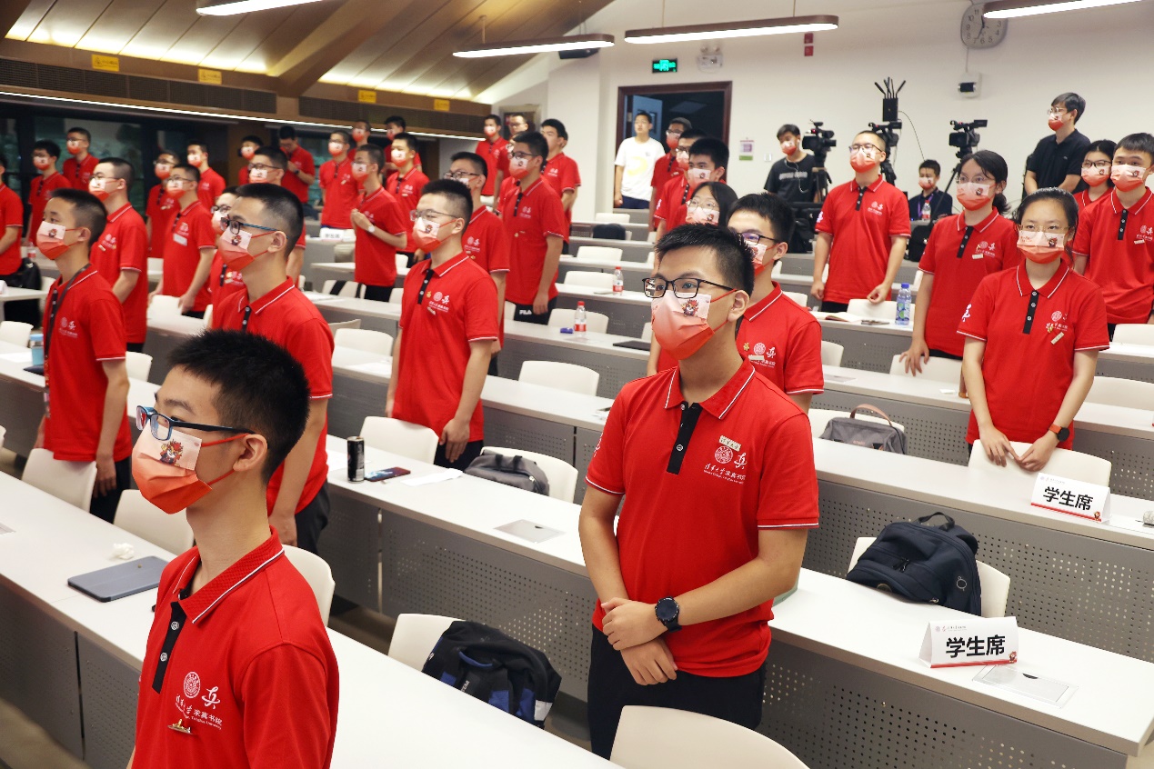 典礼最后,全场起立并合唱求真书院院歌,新生庄严地将书院院徽佩戴在胸前。少相知壮不忘,肩负使命要上庠;兴东西文明,载史册荣光。求真学子将牢记求真初心,为数学事业发展贡献力量。